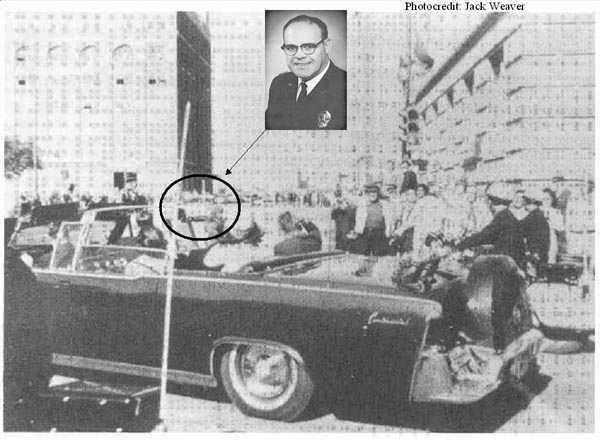 Jack Weaver photo, showing lead car about 120-150 feet ahead of the Presidential limousine.
