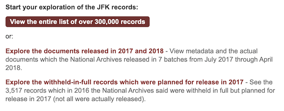 NARA released some documents on July 24, 2017. When the October 26 deadline for full release finally arrived, President Donald Trump signed an order allowing continued withholding of most of the remaining records, pending further review. Seven sets of releases followed, the last on April 26, 2018. See the MFF's 2017/2018 Document Releases page for much more details including online access to all the released records in the MFF Document Archive.
