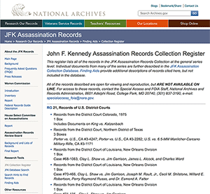 The Mary Ferrell Foundation website contains over 2 million pages of searchable and viewable documents. Well over 1 million of those pages are JFK Collection documents; others relate to the assassinations of Martin Luther King Jr. or Robert Kennedy, or other topics such as Watergate.