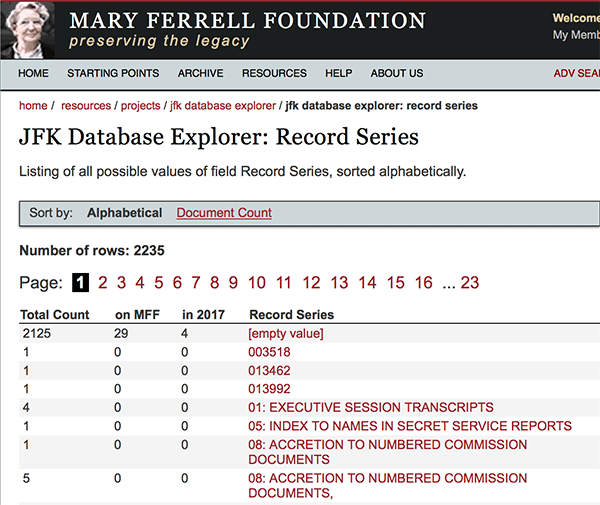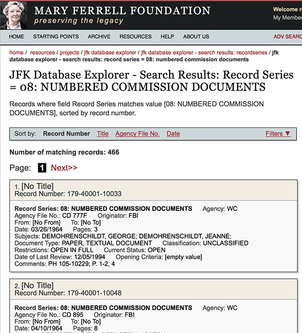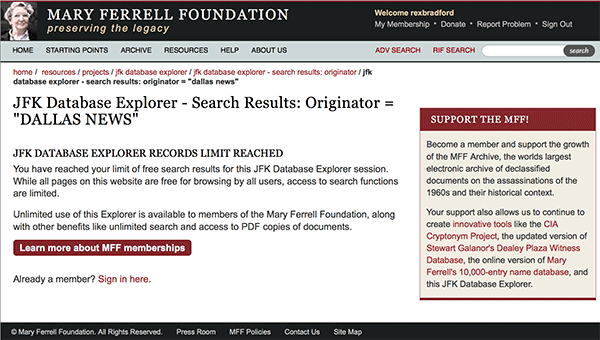 The MFF is as dedicated as always to providing access to these valuable materials, and has never locked out any particular documents or pages for members-only treatment. But there are bills to be paid. Our best compromise approach to that reality has always been this: to limit usage of some of our tools to members-only, but not limit the viewability of documents, essays, or other materials per se. The JFK Database Explorer follows this model.