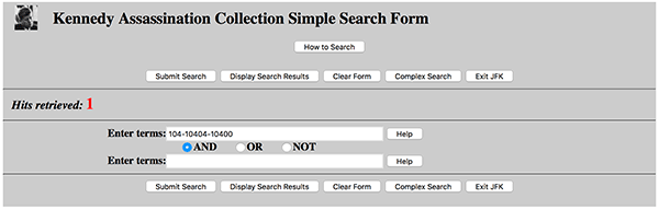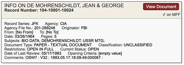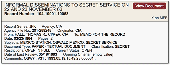 The National Archives website allows you to search the JFK Collection and view the metadata records, but not the actual document pages themselves. Here at the MFF, often you can take that next step.