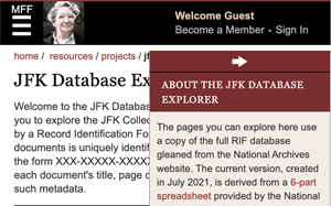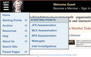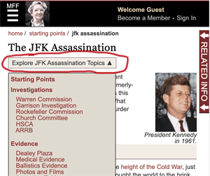 - The JFK Assassination page's list of topics is a pull-down sidebar on smaller screens (see circled pulldown in image)