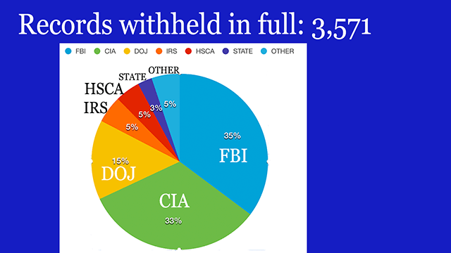 But in general, and you can scan through these for yourself using the JFK Database Explorer, just from the titles and subjects it's clear that there is much of interest in these still-withheld records. And the simple fact that these have been withheld for this long adds a bit of mystery. In some cases, like IRS records, the withholding is directly related to general government practices around documents. In other cases, it's not at all clear why some documents are withheld.