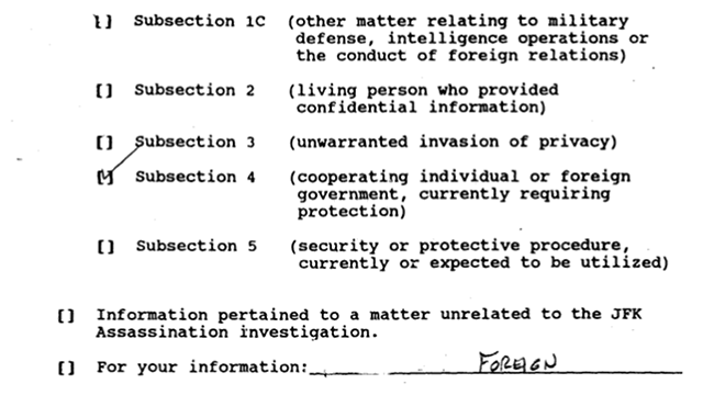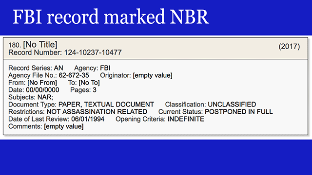 As I mentioned, most of the still-withheld FBI records are, perhaps rightly or perhaps wrongly, marked Not Believed Relevant. But not all of them.