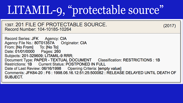 - This is a 260-page "201 FILE OF PROTECTABLE SOURCE" for agent LITAMIL-9, who was a double-agent working inside the Cuban Embassy, for which an identification and associated references is made on the Mary Ferrell Cryptonym Database Project. LITAMIL-9 for instance informed to the CIA on the demeanor of Silvia Duran when Duran returned to the Embassy, after having been arrested by the Mexican government at station chief's Win Scott urging and harshly interrogated. [VIEW]