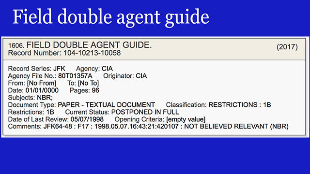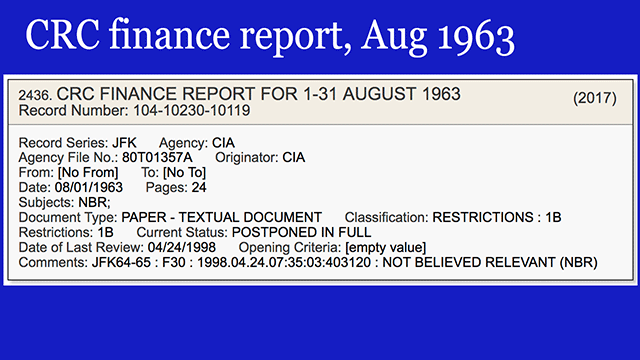 - An 86-page file on the DRE Cuban exile group - you know Carlos Bringuier et al - helpfully labeled "Not Believed Relevant." Note the term "operations" - we'll come back to this. [VIEW]