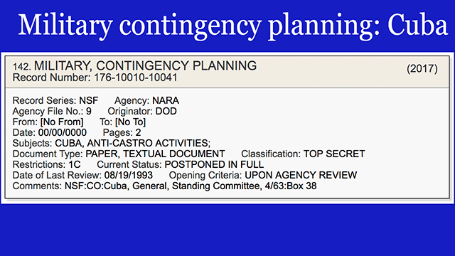 - There are withheld DOD records on military contingency planning around Cuba. [VIEW]