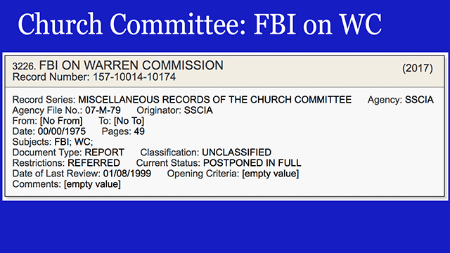 - A 49-page Church Committee record entitled "FBI ON WARREN COMMISSION" [VIEW]