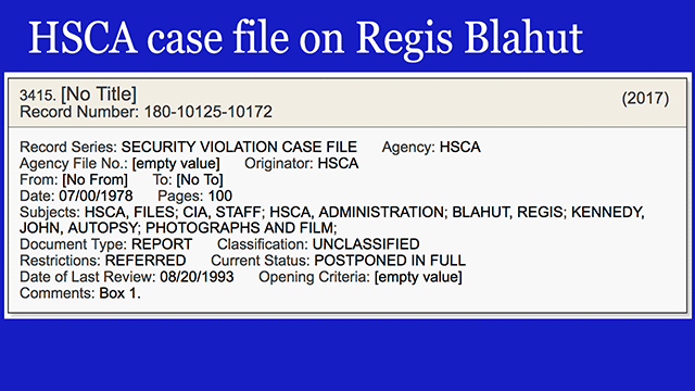- A 100-page document on the strange story of Regis Blahut's mishandling of JFK autopsy photos. [VIEW]