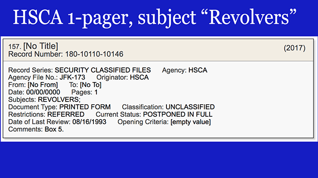 - Some of these are just intriguing even if they probably won't amount to much. Here's an HSCA 1-pager with the no title and the subject "REVOLVERS" - really? [VIEW]