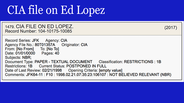 - A 40-page CIA file on HSCA investigator Ed Lopez. [VIEW]