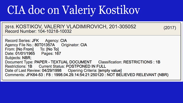 - A 167-page CIA document on Valeriy Kostikov, the Soviet agent stationed in Mexico whose name was used as part of the "world war III" scenario that the Warren Commission we now know was created to push back against. [VIEW]