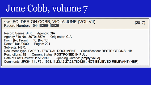 - A 221-page document on June Cobb, a person fascinating enough that a whole book could be written on her. Given that this is volume 7, it appears the CIA already has. [VIEW]