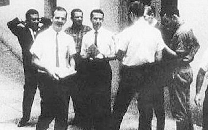 Lee Harvey Oswald passing out pro-Castro leaflets in New Orleans in the summer of 1963