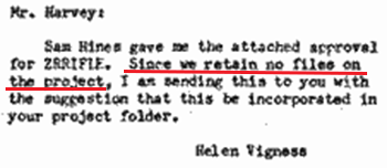 Feeney continued to mull over ways to overthrow Castro. A memo to Harvey in early 1962 states that “Modesett and Commander Hal Feeney of ONI at Guantanamo have in the past loaned considerable assistance to counter-revolutionary groups operating on the base and in the general area surrounding the base”, and that Balbuena needed a new method of receiving tommy guns and sniper rifles now that he couldn’t simply obtain them from Guantanamo. Harvey wrote a note to his deputy Bruce Cheever to “please take any necessary actions”, and a routing slip assures that this matter has been “taken care of”.[ 46 ]