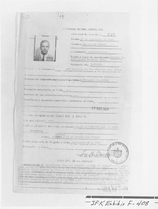 As mentioned above, Oswald had a track record of success in obtaining an instant visa when he sought entry into the USSR in 1959. This time, he arrived at the Cuban consulate on a Friday, demanding an instant visa to get into Cuba by the following Monday. He went so far as to make up a yarn that the Soviet embassy in Mexico City had approved his visa to the USSR. In short, Oswald’s mission was probably bound to fail, whether he knew it or not.